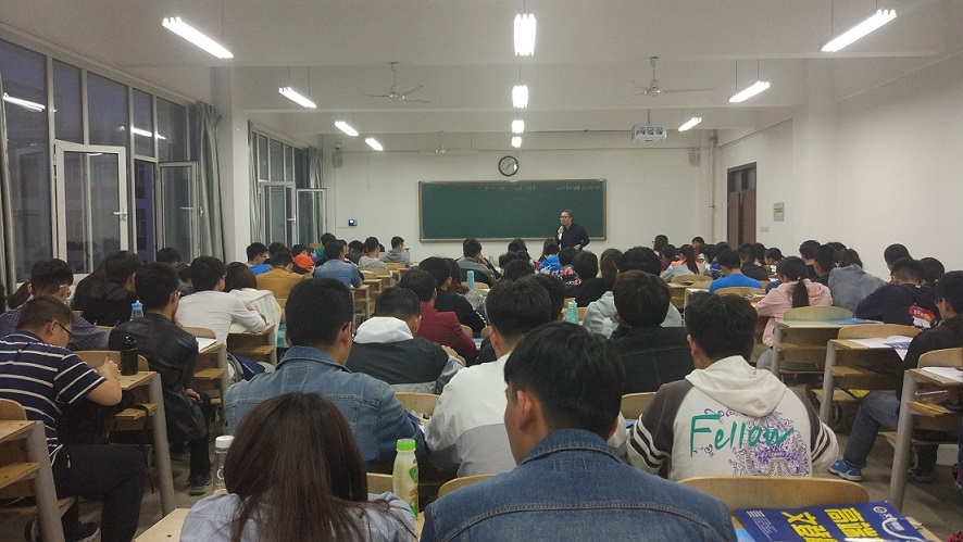 4月26日晚7点,由威廉希尔官网组织的四、六级知识讲座在9号教学楼403教室成功举办。资深教授王国清带来了一场让在座的两百多名2015级学生受益匪浅的精彩讲座。