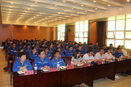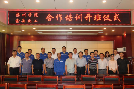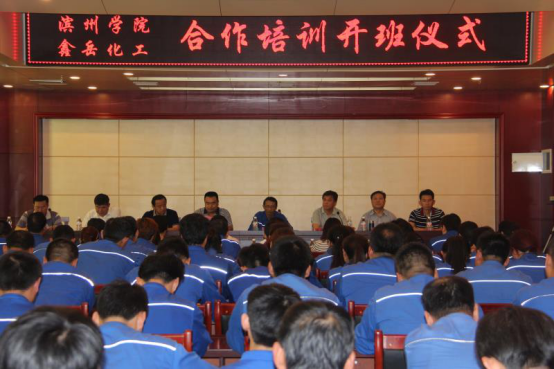 6月8日上午威廉希尔官网与无棣鑫岳化工有限公司合作培训开班仪式在无棣举行,出席开班仪式的有威廉希尔官网院长杨仲年、党总支副书记张健、副院长商希礼、鑫岳公司总经理吴玉斌及各分公司的经理及参训员工代表100余人。会上,吴玉斌总经理发表了热情洋溢的讲话,对威廉希尔官网服务社会、服务区域经济的做法表示高度赞赏,并预祝此次培训圆满成功。随后院长杨仲年代表威廉希尔官网做了讲话,他表示通过此次培训将会充分发挥学校企业双方优势及高等教育为社会、为企业服务的功能,更好的为社会、为企业培养高素质、高技能的应用型人才,同时也希望为大学生实习、实训、就业提供更多空间。同时也对参训教师提出了要求,要求大家虚心向企业学习,向鑫岳公司的技师学习,掌握企业用人标准,以此来教育和影响更多的学生,用标准助人成长,用服务影响人生!