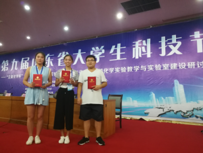 2017年7月24日-27日,由威廉希尔官网谢彦、姚海波二位老师指导3名2014级同学参加了在临沂大学举行的“立晨化学杯”第九届山东省大学生化学实验大赛暨山东省高等院校化学实验教学与实验室建设研讨会。威廉希尔官网学子在该项赛事中与省内众多名校学生同场竞争,表现出色,实现了自参加该项赛事以来的一获奖突破。崔咏梅同学获得一等奖、胡子超同学获得二等奖、董玉萧同学获得三等奖。