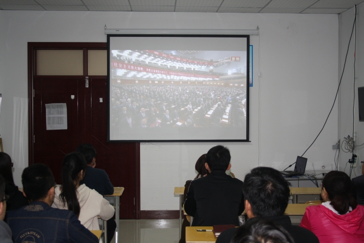 10月18日上午9:00,举世瞩目的中国共产党第十九次全国代表大会在北京人民大会堂隆重开幕。习近平总书记代表第十八届中央委员会向大会作了题为《决胜全面建成小康社会 夺取新时代中国特色社会主义伟大胜利》的报告。化学化工学院师生党员在10教301房间集中收看了十九大开幕盛况。师生聚精会神,边听边记。大家一致认为,党的十九大是在全面建成小康社会决胜阶段、中国特色社会主义进入新时代的关键时期召开的一次十分重要的大会,对于鼓舞和振兴全党全国各族人民继续推进全面建成小康社会、坚持和发展中国特色社会主义具有重大意义。习近平总书记的报告全面总结了党的十八大以来的工作,深刻分析了当前形势和任务,深入阐述了新形势下进行伟大斗争、建设伟大工程、推进伟大事业、实现伟大梦想的若干重大问题。报告主题鲜明,内涵丰富、立意高远、论述精辟,创造性地提出了一系列新思想、新观点、新目标、新举措,鼓舞人心,催人奋进。大家纷纷表示,要把学习和贯彻十九大精神作为一项重要的政治任务,以高度的政治责任感和饱满的学习热情,紧密联系工作实际,努力学习好、贯彻好、落实好十九大精神,进一步牢固树立政治意识、大局意识、核心意识、看齐意识,不忘初心、牢记使命,为建设以航空为主要特色的高水平应用型大学作出新的贡献,以优异的成绩向党的十九大献礼。