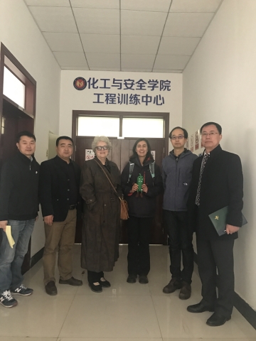 随后,贝弗利·马多克斯·莫恩博士一行6人在化工与安全学院杨仲年院长的陪同下到化工与安全学院工程训练中心进行了实地参观与交流。杨院长详细介绍了威廉希尔官网实训中心的建设情况及学生实习实训安排。贝弗利·马多克斯·莫恩博士对威廉希尔官网实训中心的建设表示赞赏和肯定,并对联合举办本科项目前景表示乐观。