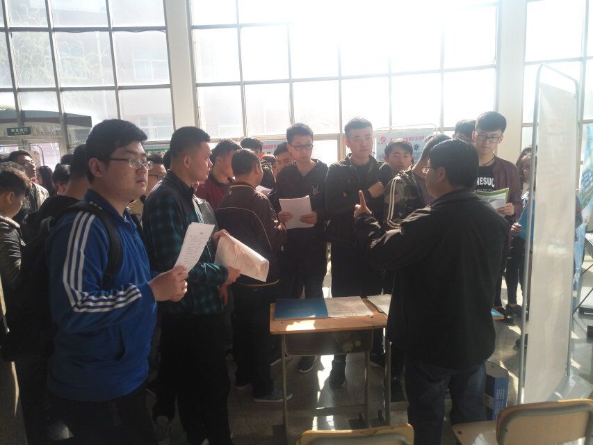 上午9:00,招聘会准时开始,报告厅里充满着同学们对未来的忐忑和憧憬,有的学生经过详细咨询后向心仪单位投递简历,表达求职意向;有的学生难以抉择,不时与同行好友商讨;也有的当场进行简单的面试。参加这次招聘会的不仅有在校毕业生,还有许多在校的学生来,以了解目前的就业形势和人才需求。招聘会一直持续到中午,同学们热情不减,招聘人员也耐心地一一解答同学们的疑惑。