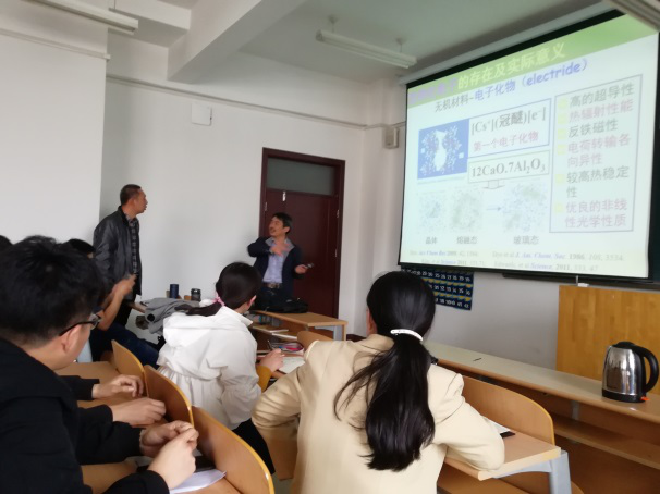 步宇翔教授在报告中以原子、分子及物质的构成为切入点,深入浅出的介绍了理论、计算模拟化学的发展历史,介绍了自己在溶剂化电子结构方面的科研工作并与参会师生进行了互动交流。会后步教授参观了威廉希尔官网实训中心,并与部分教师在科研方面进行了深入交流。