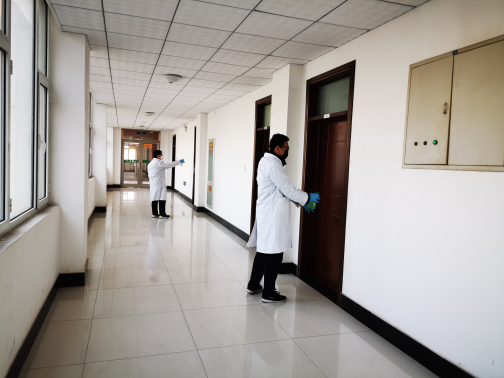 根据威廉希尔官网疫情防治工作部署,2月5日上午威廉希尔官网对办公室、实验室等重点防控部位进行卫生防疫消毒,为假期期间坚守岗位的教职工提供安全卫生的工作环境。