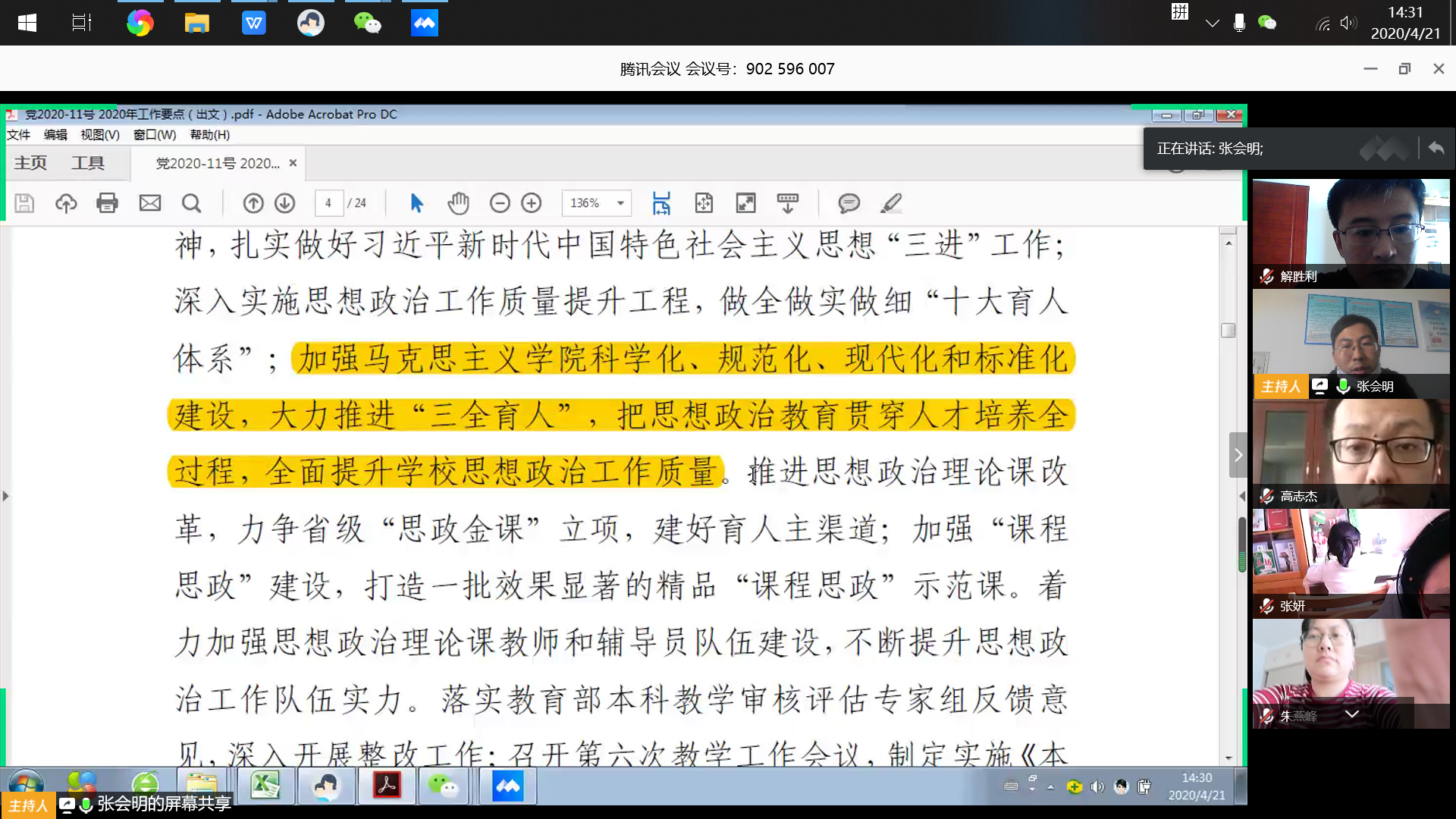 会议强调:一要立足威廉希尔官网事业发展需求,积极作为,密切加强与相关行业和产业的对接力度,找准合作点,夯实合作基础,积极争取各类合作机会和合作经费。二要强化责任担当,在当前这段时间各位老师要继续做好网课的教学工作,学院督导组要做好相关督导和指导;各位学科成员要积极产出相关成果,积极投身一流学科的建设;各个专业要提前做好专业发展谋划,专业认证、一流课程建设等工作都要谋求突破。三是围绕近期申硕工作,要细化各项准备工作,各科室、各专业密切协调配合,确保数据准确,工作推进有力。