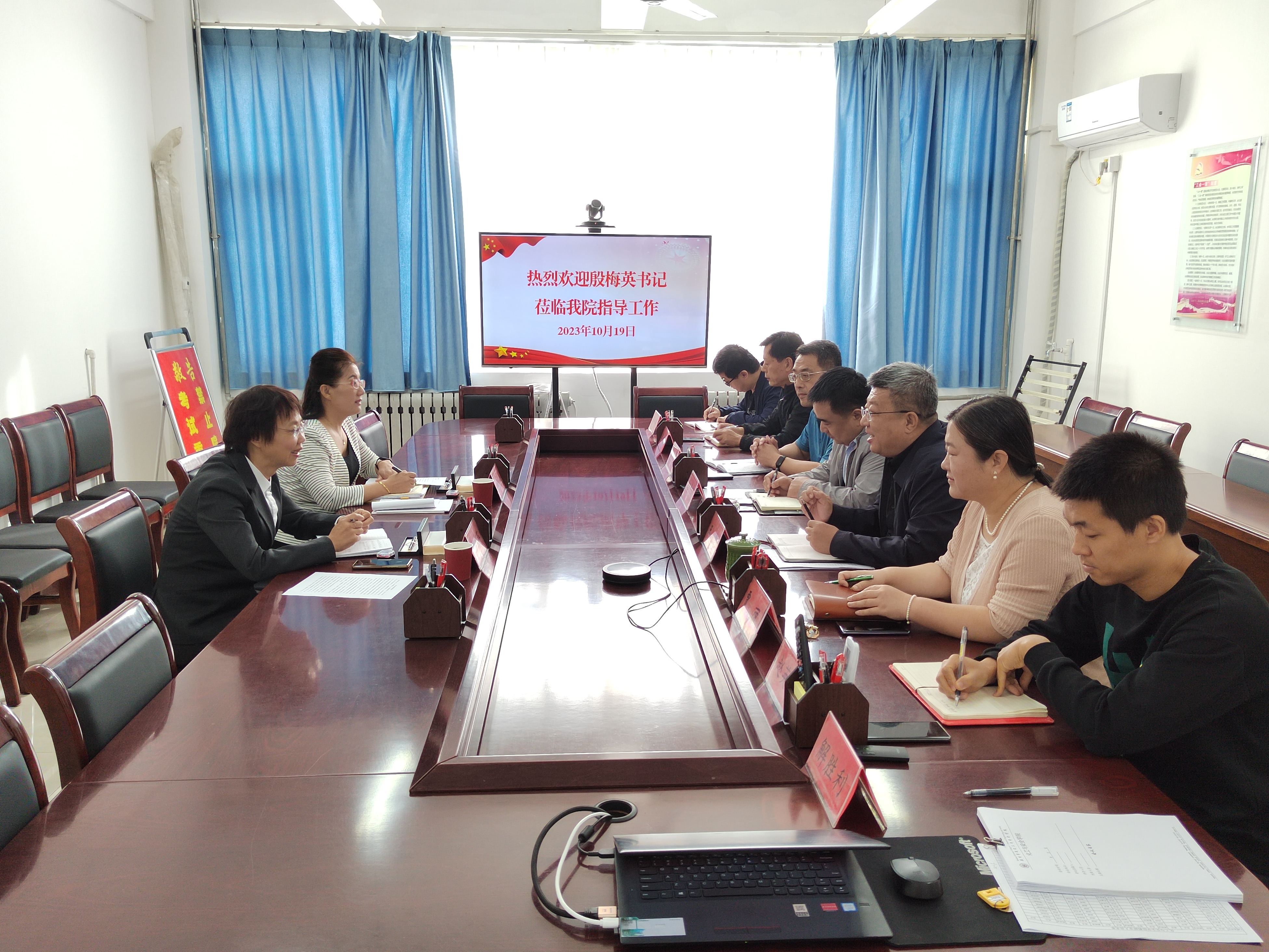 殷梅英认真观看了学院宣传片,听取了学院负责人从党建引领、师资队伍、硕士点建设、教学科研、学生工作以及学院发展面临瓶颈等方面的专题汇报。