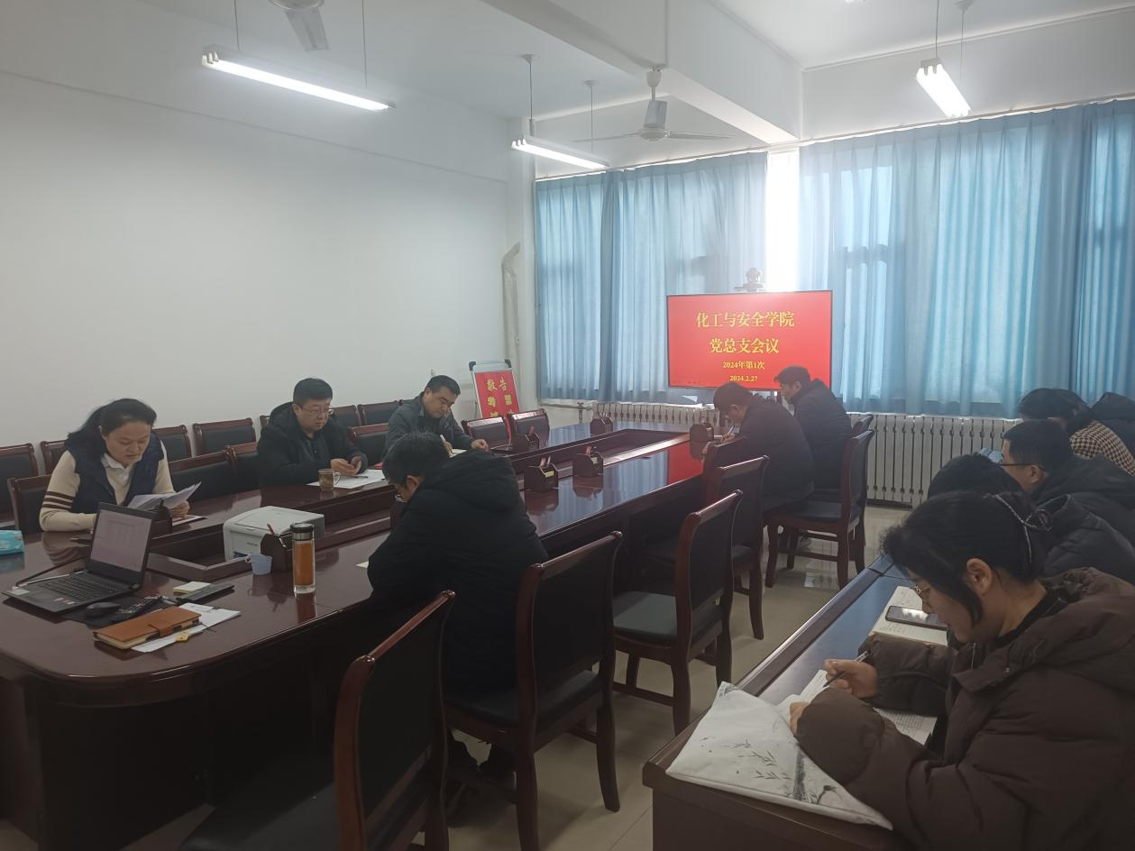 2月27日上午,化工与安全学院召开2024年第一次党总支(扩大)会议,党总支书记主持会议,党总支成员、各党支部书记参加会议。