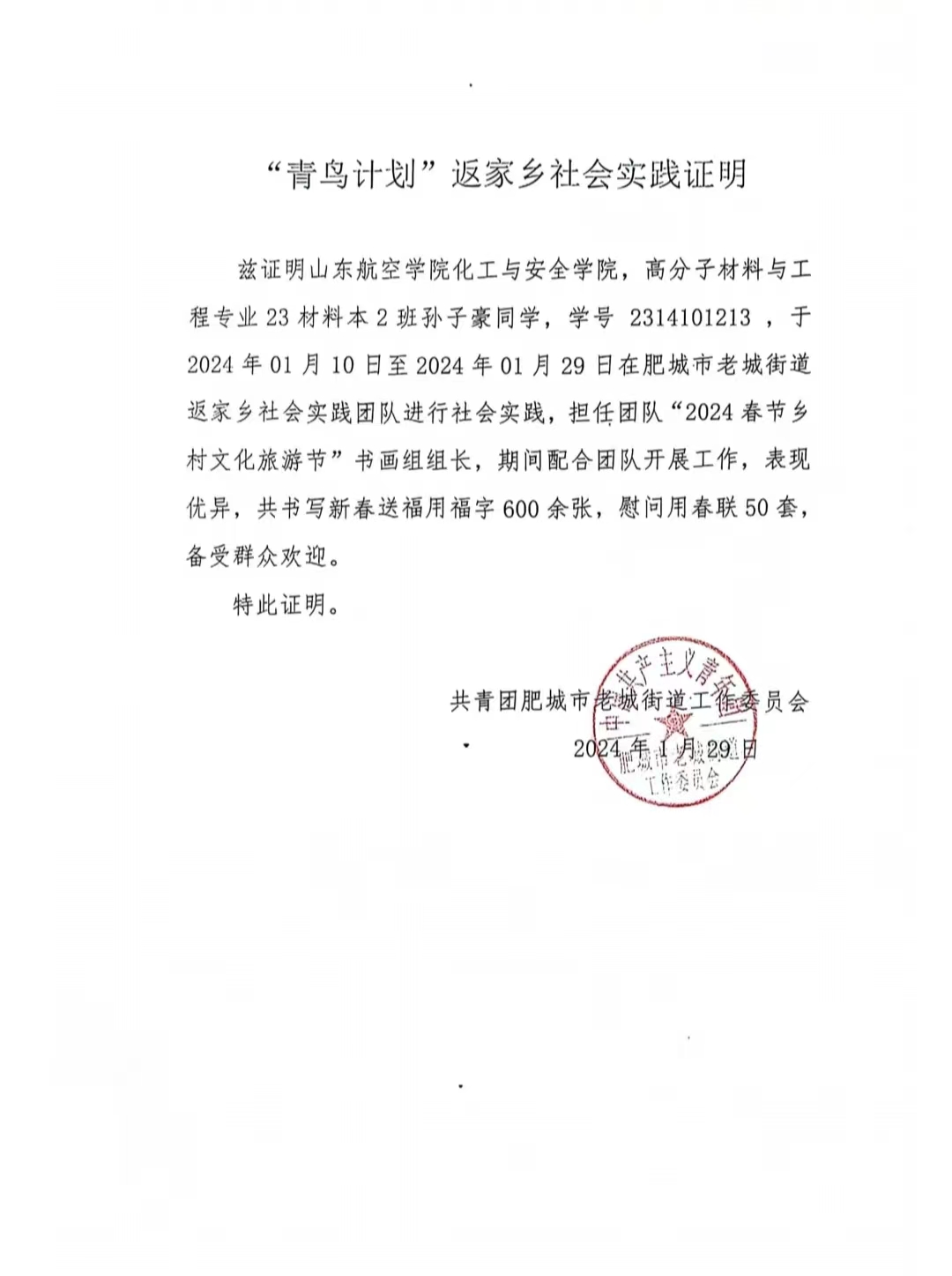 为贯彻落实习近平总书记关于青年工作的重要思想,引领青年大学生在理论和实践中培养社会责任感,提高自身的实践能力和解决问题的能力,化工与安全学院团总支响应校团委《关于开展2024年寒假社会实践活动的通知》要求,积极组织动员青年学子返回家乡参加社会实践,为家乡建设、家乡振兴贡献青春力量。