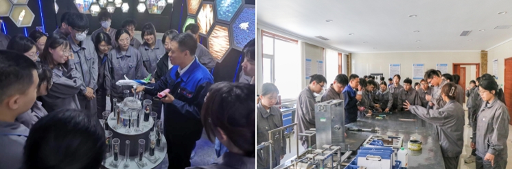 滨澳电线电缆有限公司董事长董桂光先生介绍了公司的发展历程,并给同学们分享了创业心得。公司相关负责人结合生产实际和案例,分别为同学们讲授了企业安全生产、电线电缆生产工艺、企业数字化转型等知识。同学们还在生产车间、产品展厅、检测实验室等场所进行了现场观摩和实践体验。