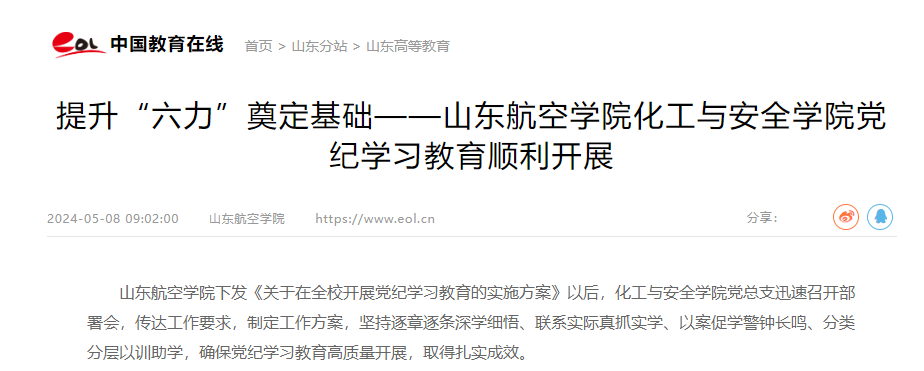 近日,威廉希尔官网党纪学习教育开展情况被学习强国、中国教育在线报道。