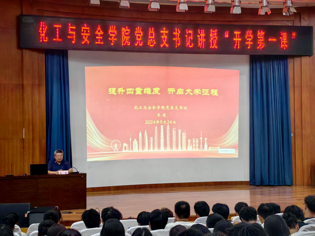 会上,王建以“提升四重维度,践行五心原则,开启大学征程”为主题,为新生们带来了一场深刻而生动的演讲。他首先阐述了人生发展的四个重要维度,并创新性地融入了“大心、虚心、平心、潜心、定心”的五心内容,为新生们指明了全面发展的道路。王建用“尚学尚品尚进尚成,慎始敬终行稳致远”作为本次开学第一课的结束语,希望每位新生都能在大学四年中,保持对知识的渴望,塑造良好的品德,同时谨慎对待每一个开始,敬重每一个结束,稳步前行,迈向更加辉煌的未来。
