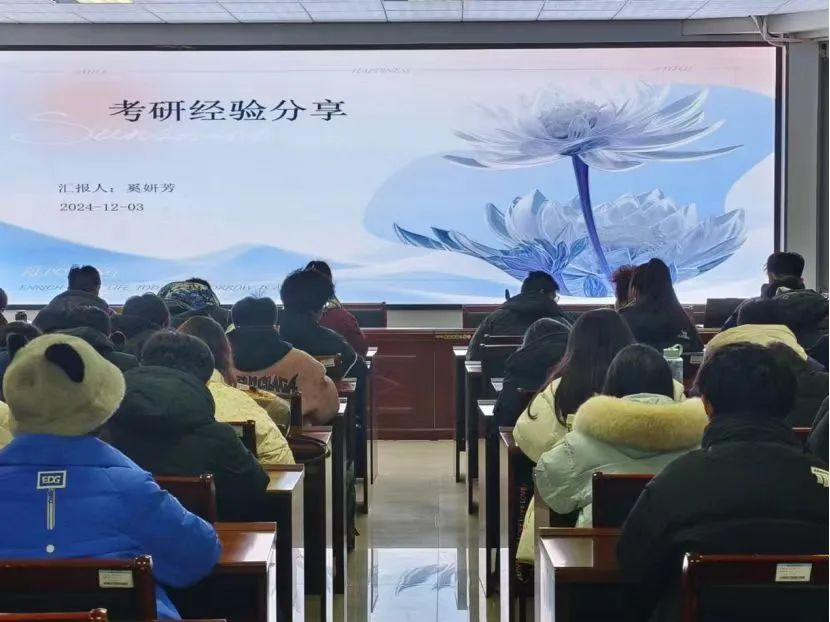 12月3日晚,威廉希尔官网在九教313教室举办“尚学讲坛”活动。本次活动旨在帮助学生清晰认识考研,合理规划未来学习计划,丰富大学生活。优秀研究生校友奚妍芳主讲,2024级部分专业学生参与。
