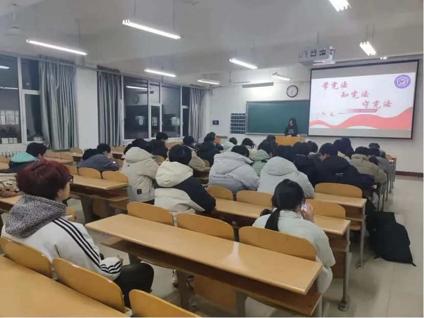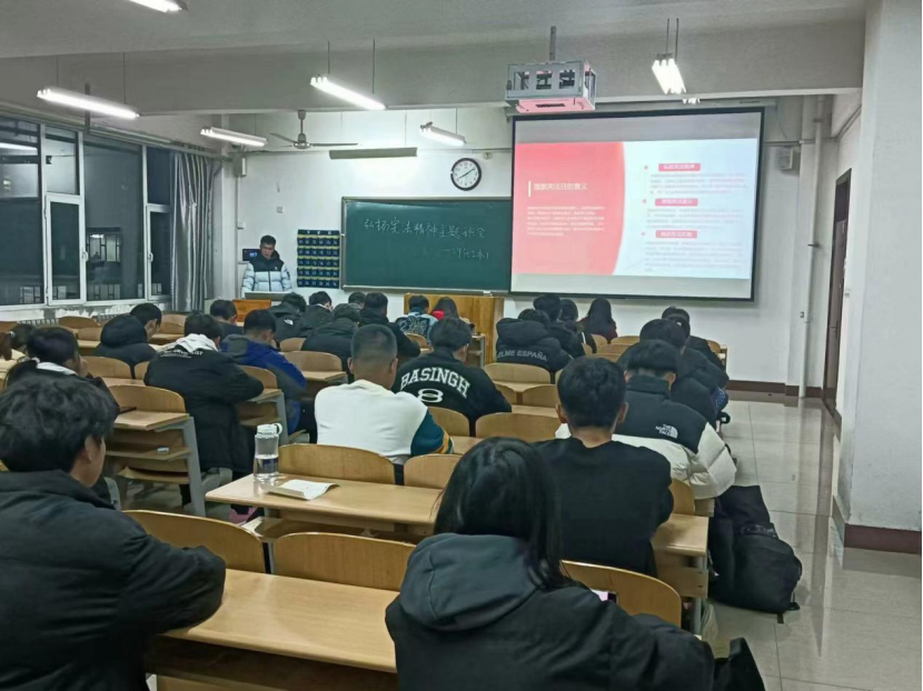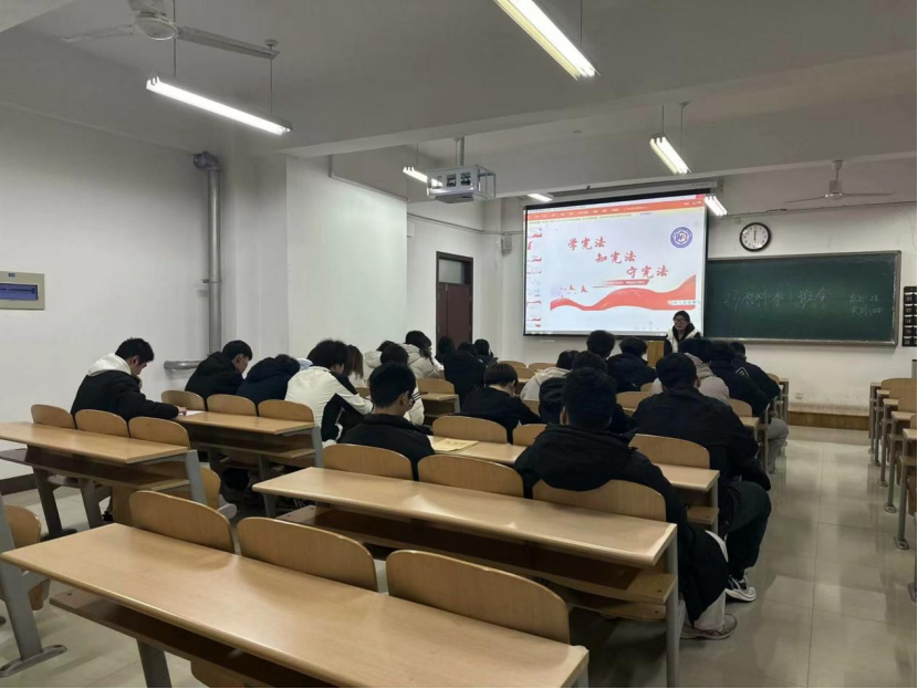 12月1日,我学院开展“宪法精神教育”主题班会,旨在深入学习贯彻习近平法治思想,提升学生法治意识。威廉希尔官网全体学生参与。