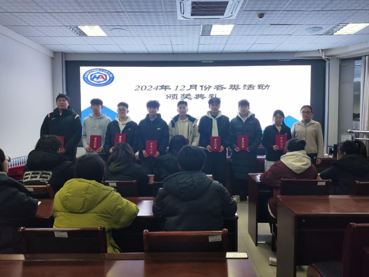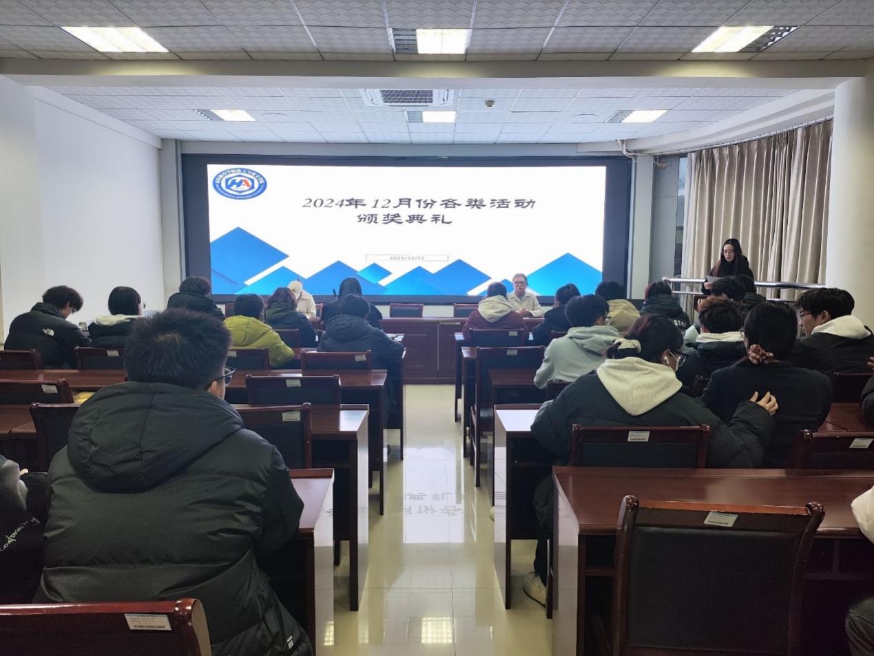 12月22日晚,威廉希尔官网在9号教学楼313教室举行12月份颁奖典礼,旨在表彰在各类活动中表现杰出的团队和个人,激励其他参与者不断追求卓越,同时增强比赛的仪式感和吸引力。学生科辅导员杜金双、姚斌及全体获奖人员参加。