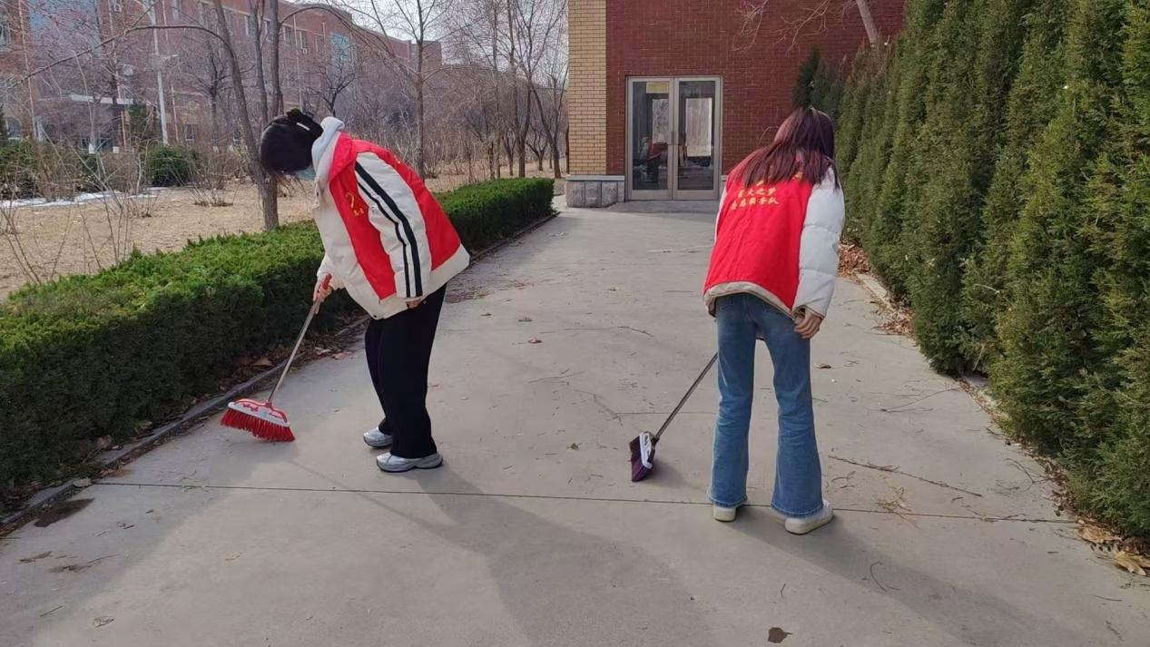 清扫现场,学生们的身影忙碌而有序: