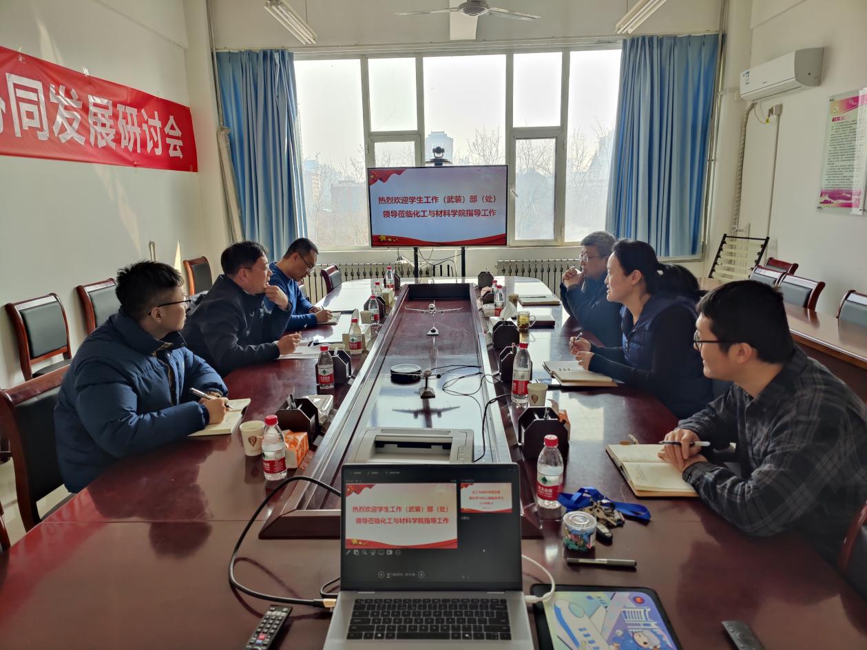 3月6日,学生工作(武装)部(处)处长李帅、副处长王泰宁及刘成肖一行莅临威廉希尔官网调研指导工作。威廉希尔官网党委书记王建、党委副书记李芳及学院辅导员参加了调研座谈会。
