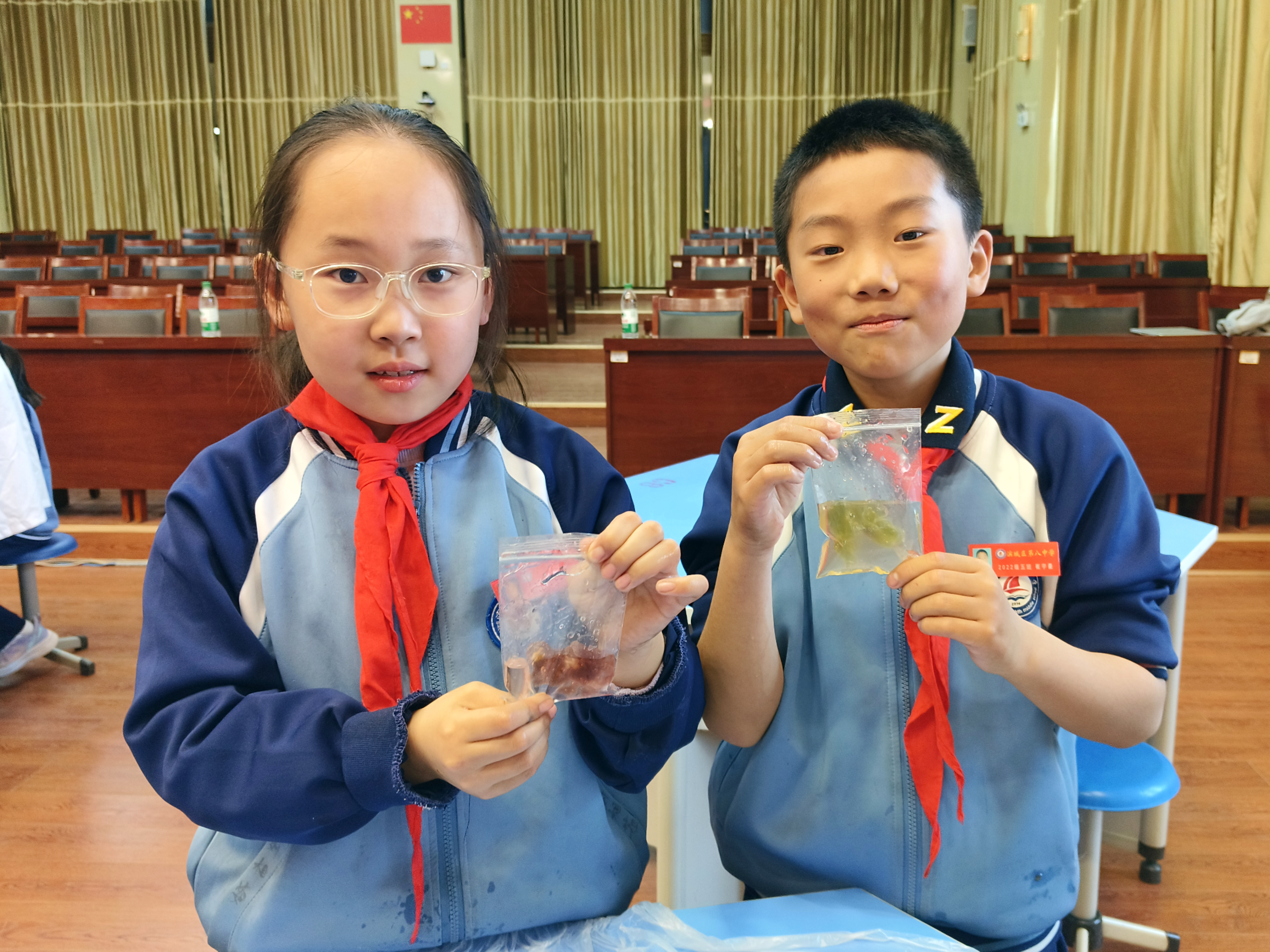 接下来,小陈老师和指导老师们带领同学们进入了水宝宝的制作环节。同学们亲手将海藻酸钠、氯化钙和食用色素混合,然后将盛有海藻酸钠的模具浸入氯化钙溶液中。不一会,一个个可爱的水宝宝便诞生了。
