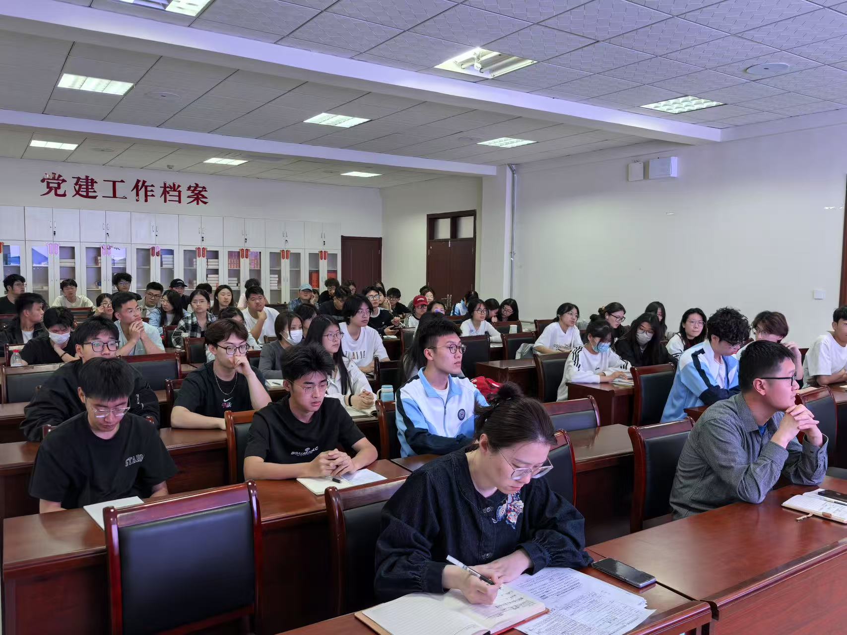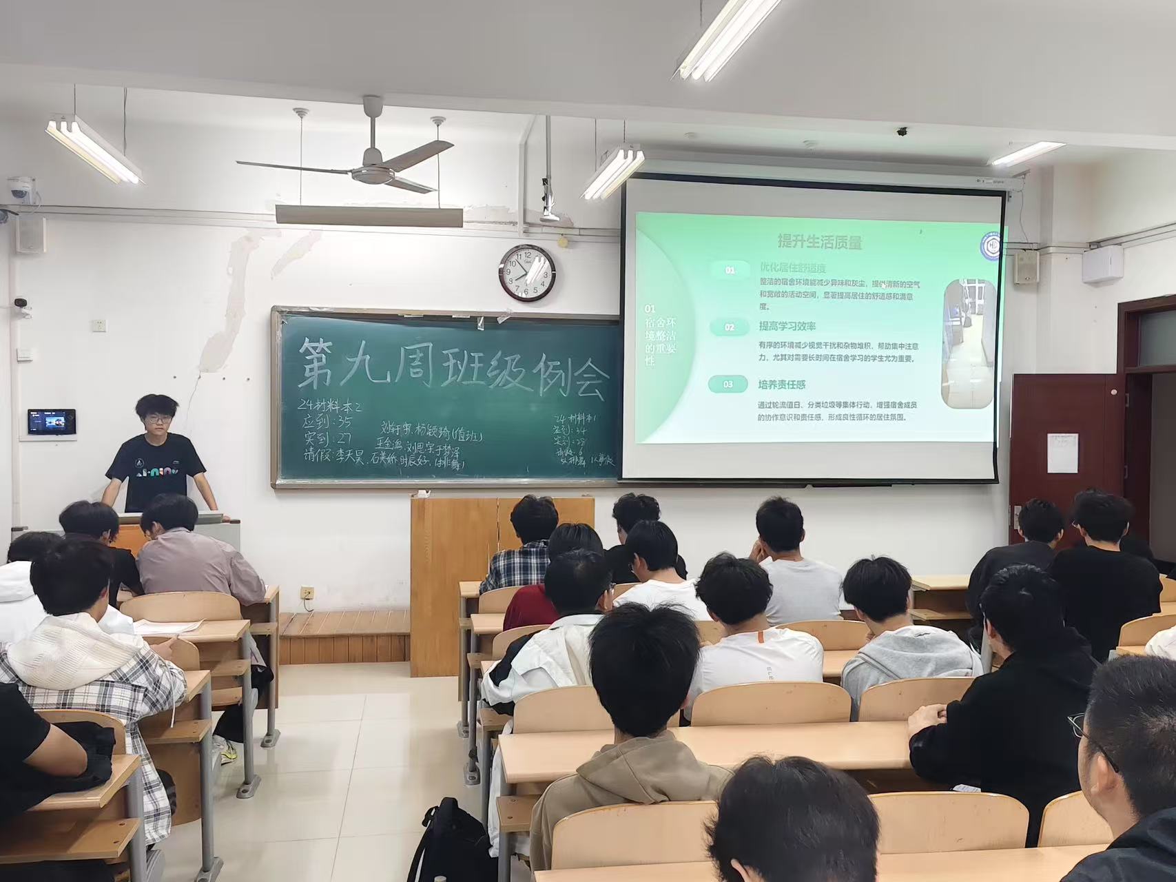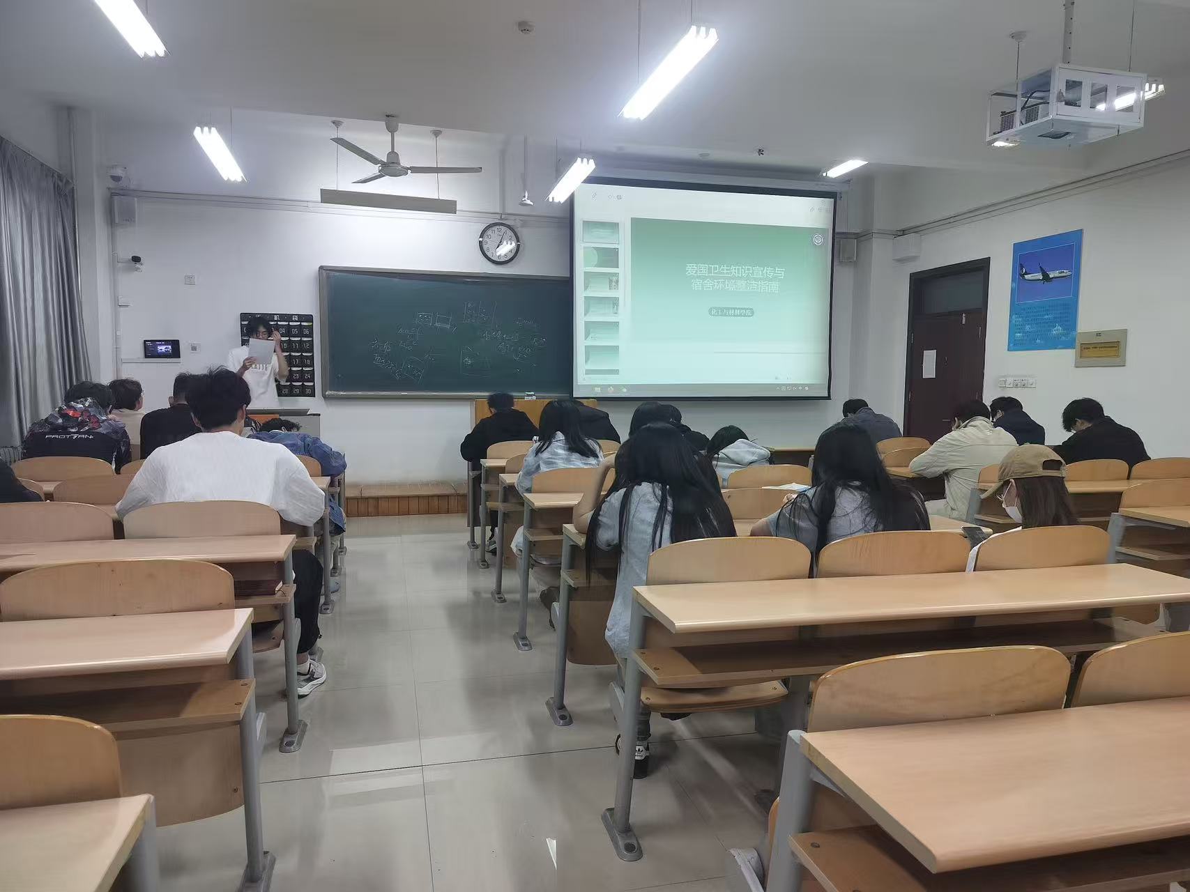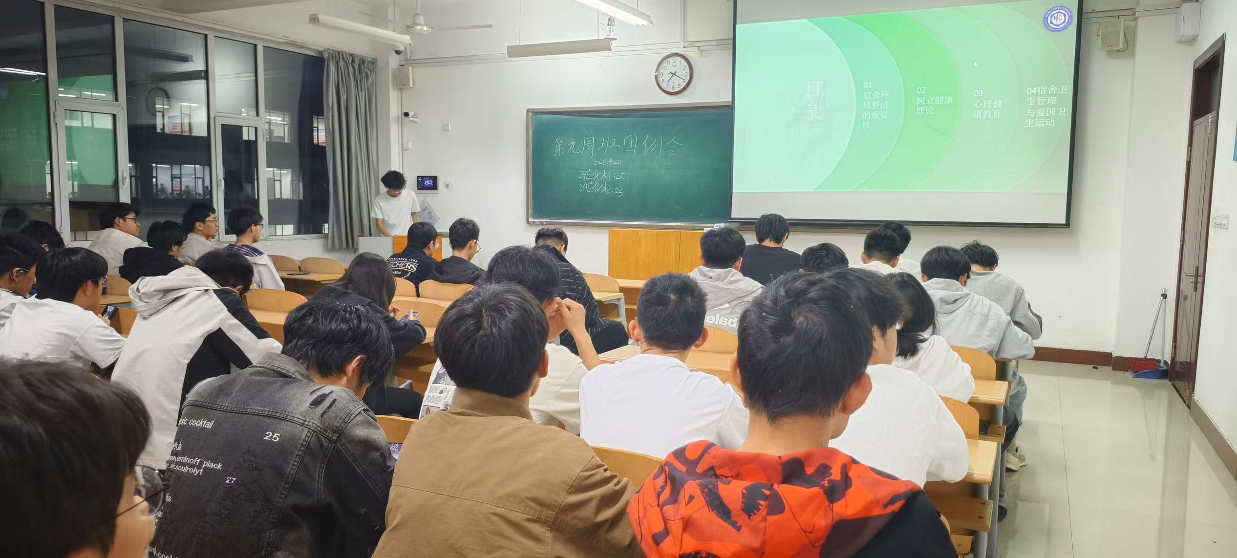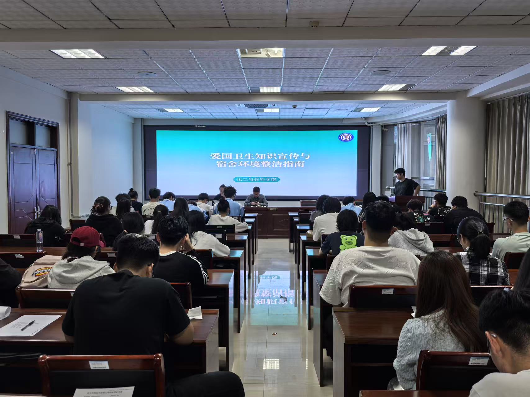 在各班级的主题教育班会中,学生干部们成为了主力军。他们精心策划,通过多种生动有趣的形式,将爱国卫生知识、宿舍环境整洁的重要性以及健康生活理念传递给每一位同学。班会现场气氛热烈,同学们积极参与互动。