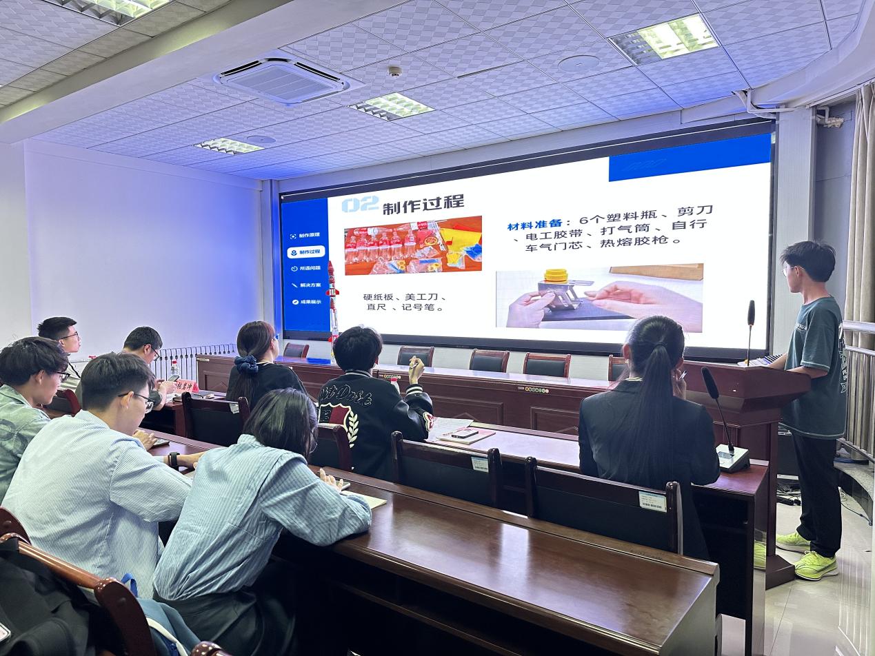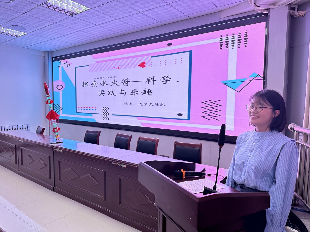 3D建模优化箭体、多级推进系统、可折叠尾翼……参赛团队将空气动力学原理化作指尖艺术,每一支水火箭都是“理论+创意”的结晶!模型展示区,火箭矩阵直指苍穹;PPT演示,创新思路如星河奔涌;答辩环节,选手以严谨数据应对评委“灵魂拷问”,展现青年科技工作者的专业素养。