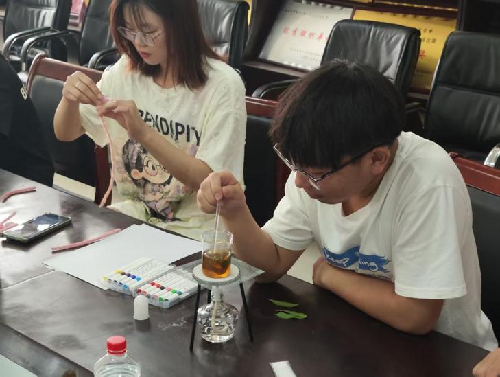 活动围绕专业特色精心设计了三大互动区域:在触感体验区·肌理万象中,同学们通过砂砾、黏土与纤维的肌理画创作,感受触觉的治愈力,让压力随笔触流淌;情绪转化区·叶脉书签·生命印记则以叶片为载体,引导大家剥离叶肉、留存叶脉,象征“剥离烦恼,留存坚韧”,一枚枚书签承载着对生命的深刻感悟;而在沉浸表达区·扭出心花样中,五彩扭扭棒在指尖跳跃,或编织成花,或缠绕成星,零门槛的创作让团队默契迅速升温,自由挥洒的创意更让内心情绪找到出口。
