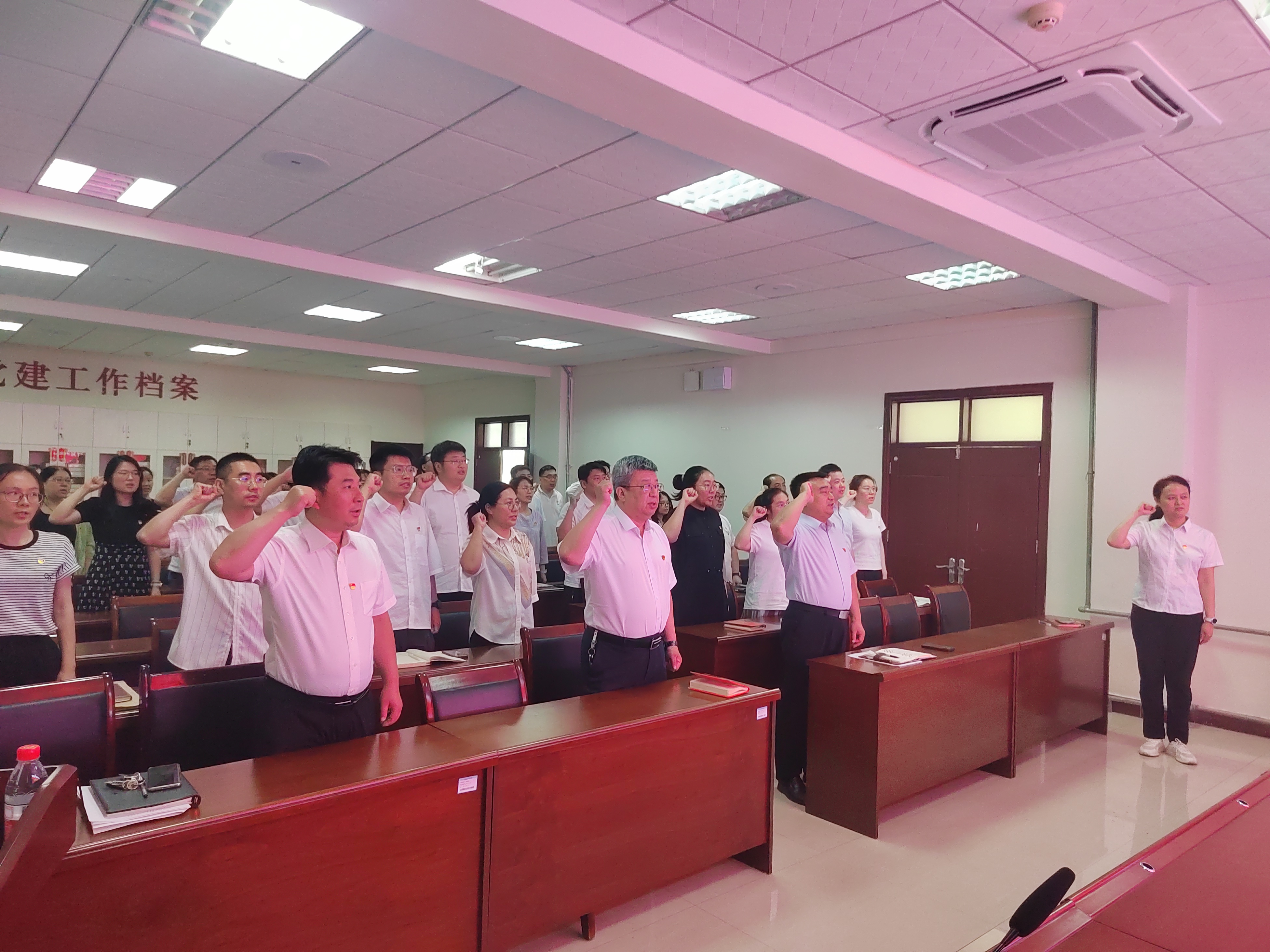 最后,全体党员庄严宣誓,重温入党誓词,在铿锵庄严的誓言中重忆入党初心。