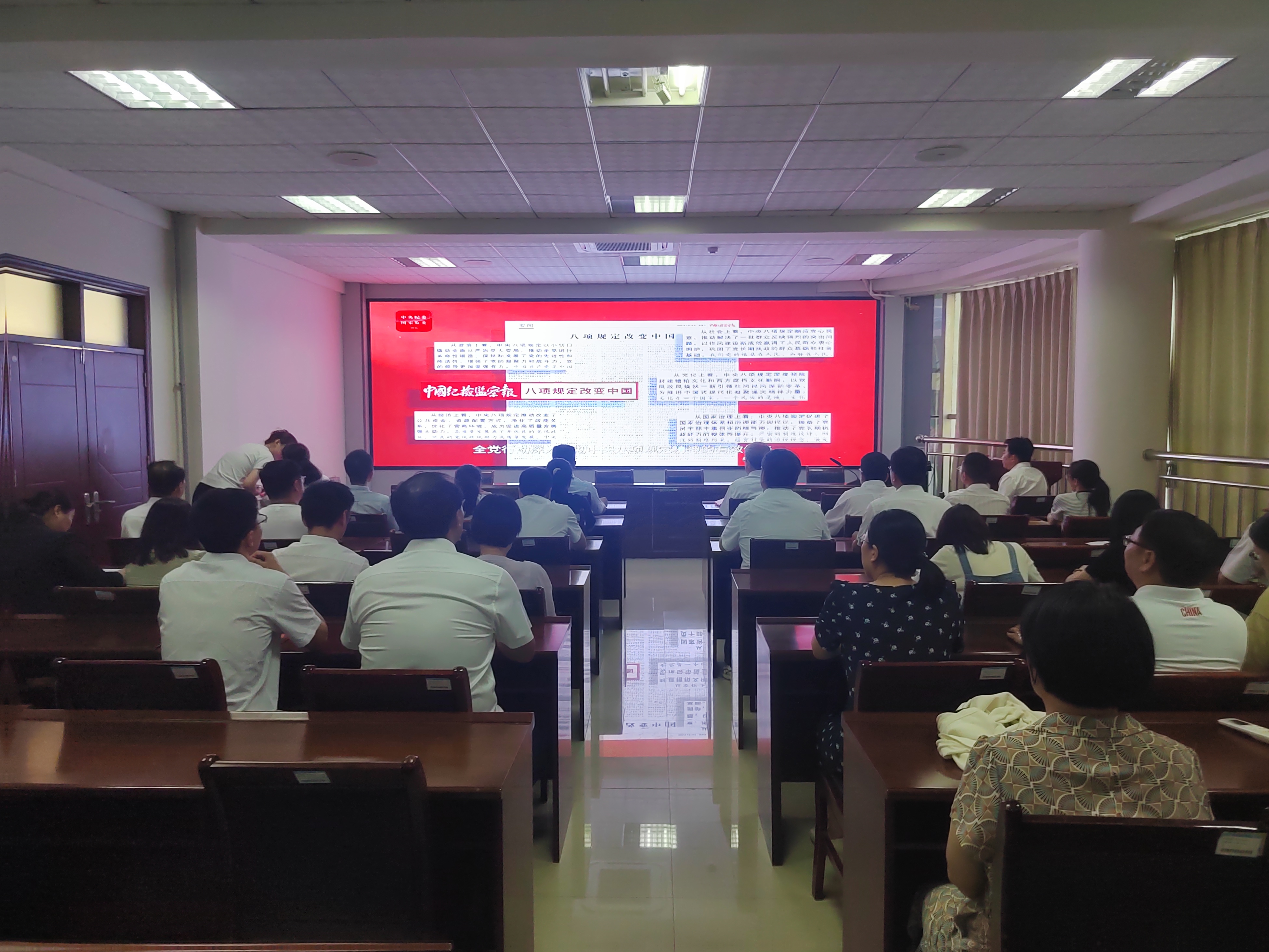 专题学习后,全体党员集中观看《八项规定改变中国》系列专题片。专题片系统展现了中央八项规定实施以来,中国共产党以作风建设为突破口推进全面从严治党的历史性变革,揭示了中央八项规定如何成为改变中国的“政治基因”,通过小切口推动大变局,扭转官场奢靡风气,有效遏制“四风”问题,推动形成了新时代风清气正的政治生态。